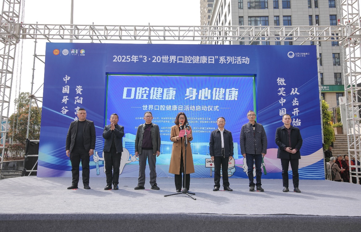 在“3.20世界口腔健康日”到来之际,公司联合资阳市总工会、高新区总工会、资阳市科学技术协会、资阳市口腔医疗产业协会、资阳高新口腔医院有限公司共同在资阳万达广场举办“口腔健康、身心健康”世界口腔健康日活动。资阳高新区党工委委员、管委会副主任、园区总工会主席刘莉出席启动仪式并讲话。市总工会、市科协相关领导及四川惠民口腔健康推广中心代表、四川大学华西口腔医院主任医师、教授陈亚多等参加启动仪式。