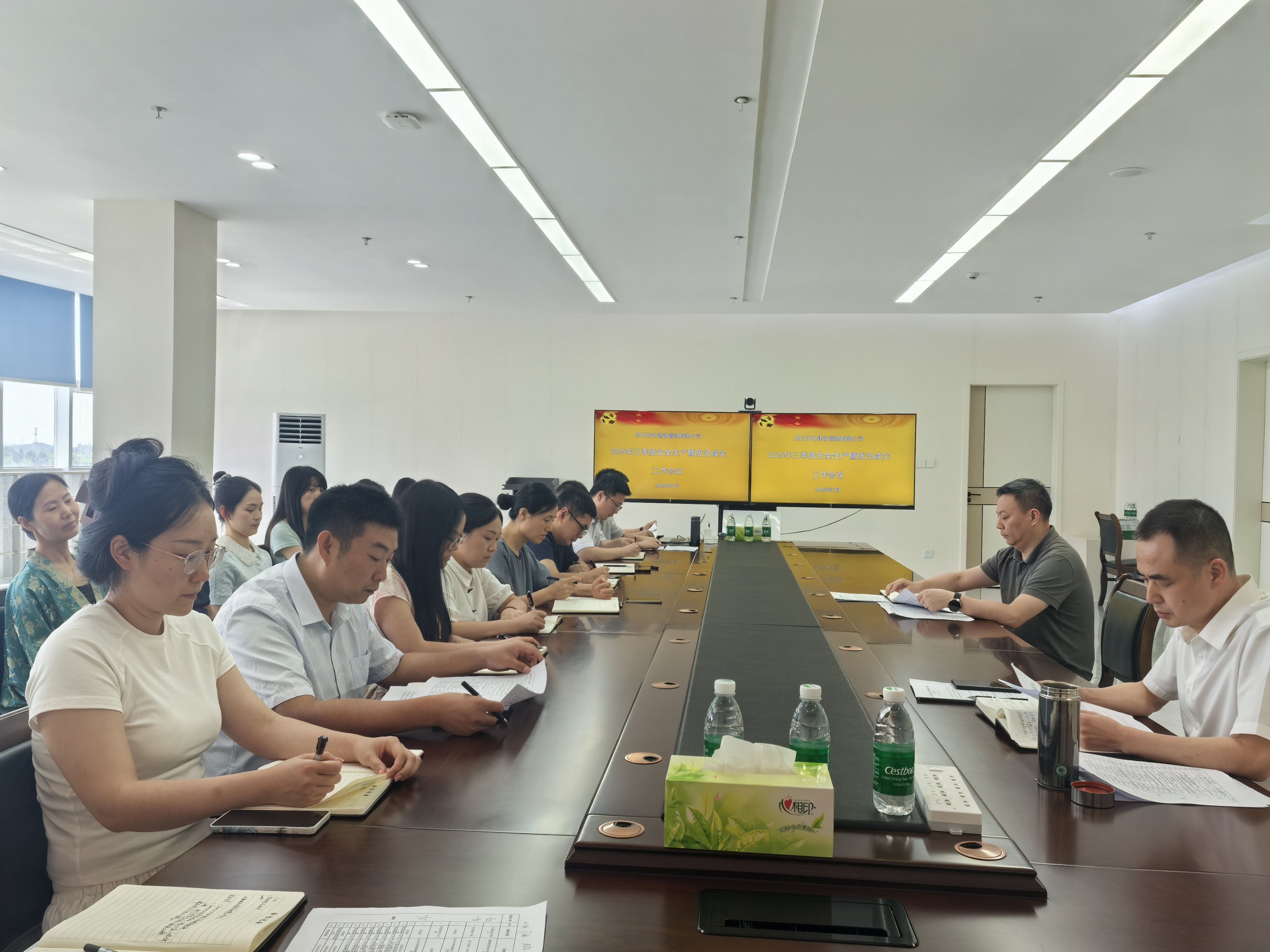 7月10日,公司召开三季度安全生产暨防汛减灾专题会,公司党支部委员、副总经理王明忠主持会议,党支部书记、董事长、总经理王冲出席会议并讲话,公司全体员工、项目物业单位相关负责人参加会议。